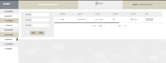 (4)入住信息管理:管理员可以查看入住信息列表,包括老人的个人信息和入住状态。