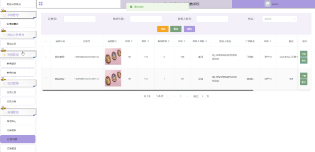 管理员拥有对所有订单的查询、删除的功能。可以对订单进行配送操作。订单列表界面如下图4-18所示。