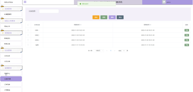 管理员拥有对商品的分类增删改查的功能,分类列表界面如下图4-17所示。