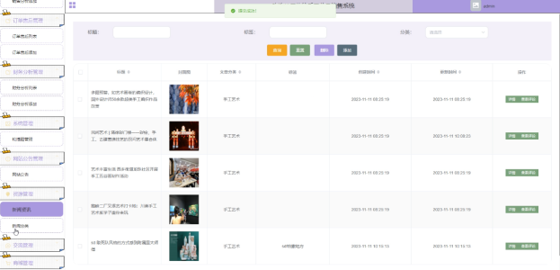 传统手工艺品销售系统中的管理人员在“系统管理”这一菜单下是可以对传统手工艺品销售系统内展示的轮播图进行添加修改的。系统管理界面如下图4-14所示。