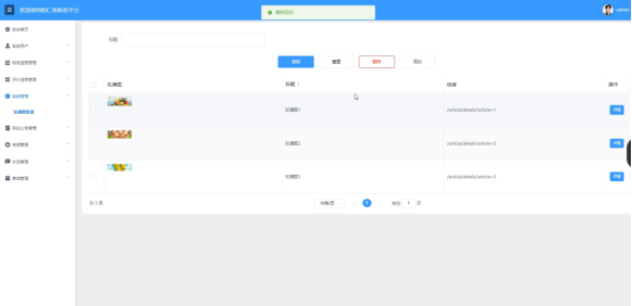 系统管理:轮播图管理:可以查看轮播图详情,以及查询、重置、删除、添加等操作。系统管理界面如下图5-11所示。