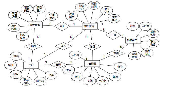 设计了用户表、预约记录表、体检报告表、体检套餐表等多个核心表格,通过合理的数据关联,确保平台操作的流畅性和数据的准确性与一致性。