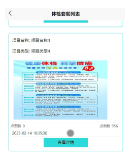 | 1 | 进入体检套餐页面查看所有套餐信息 | 成功展示套餐列表 |