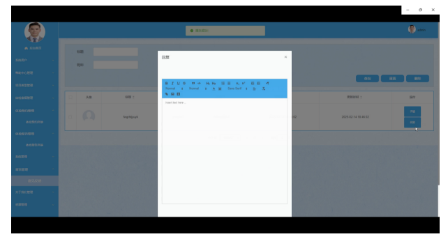 (2)管理员能够在后台系统中查看所有用户提交的反馈,系统提供按时间、类别等筛选功能,便于管理人员高效处理。通过此模块,平台能够收集用户意见并迅速做出改进,增强用户满意度,同时促进平台服务的不断提升。如下图所示。