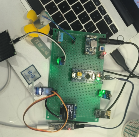 系统硬件调试是基于STM32单片机的多参数农业环境监测传感器网络系统正常运行的关键步骤,涵盖电路板焊接、传感器连接、Wi-Fi模块配置等方面。首先,按照电路设计图纸将各个元器件焊接到STM32单片机开发板上,确保焊接质量无误,避免短路或接触不良等问题。然后,依照传感器规格书,连接温湿度传感器、光照传感器和传感器到开发板的指定引脚,确保每个连接稳定可靠。接着,配置Wi-Fi模块,确保STM32单片机能够顺利接入网络并实现远程数据传输功能。在硬件调试过程中,需逐一检查每个模块的连接情况,及时排查故障并进行调整,确保系统硬件部分的稳定性与准确性。完成硬件调试后,即可进入软件调试阶段,进行功能测试,确保多参数农业环境监测传感器网络系统能够正常采集数据、触发报警并实现远程监控等功能。具体的图像显示如下图5-1所示。