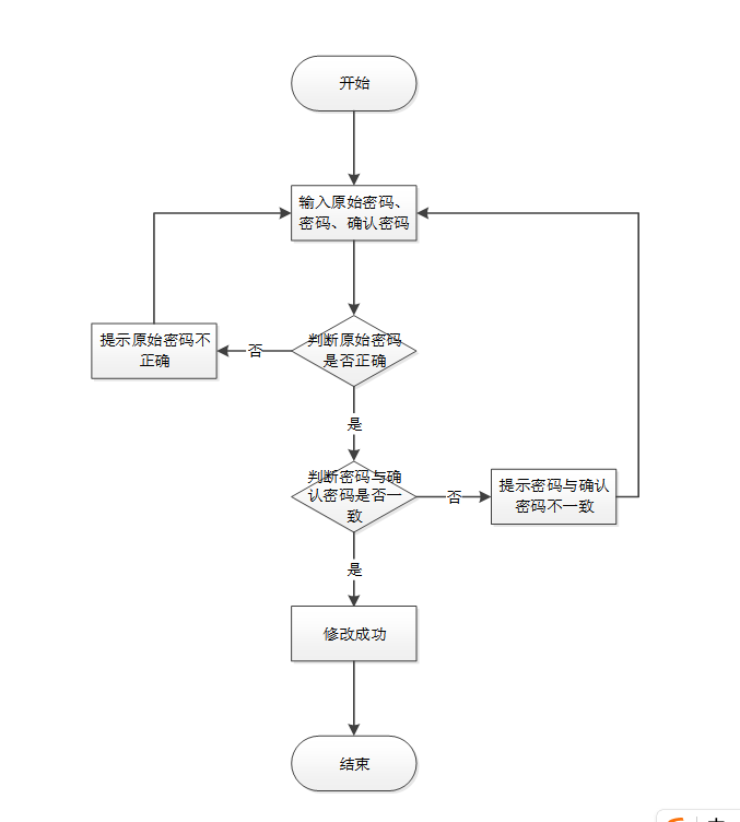 所有用户可以我的账户信息页面,点击修改修改密码进行修改登录密码操作,修改密码流程如图所示: