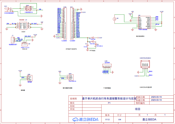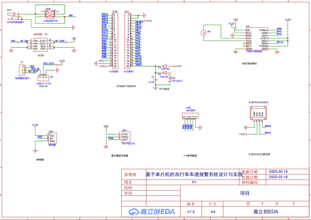 显示与输入电路:显示电路通过OLED显示屏实时展示车速信息、设定的超速阈值及报警状态,方便骑行者随时查看系统状态。输入电路用于接收用户操作指令,如设定车速警报阈值、加速、减速或开关控制等。设计时需要确保显示与输入电路的稳定性、准确性与响应速度,避免延迟或误操作。