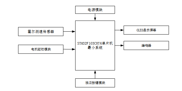加速与减速控制模块:系统配备加速和减速控制功能,骑行者可以通过按键1加速,按键2减速,按键4控制系统开关。用户可以根据需求灵活调整车速,确保安全骑行。系统原理框图如图2.1所示。
