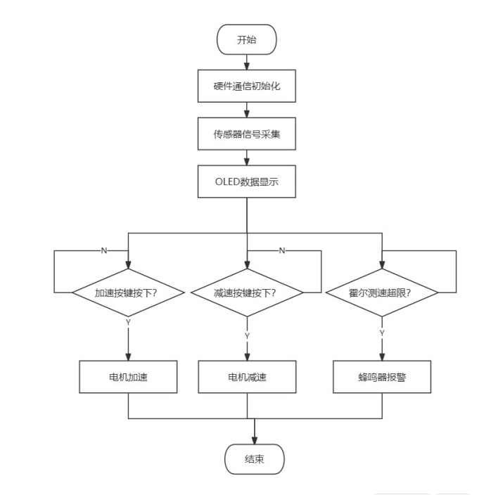 车速异常判断与响应:系统会将实时测得的车速与用户设定的超速阈值进行比较。如果检测到的车速超出了设定的范围,系统将立即启动蜂鸣器报警,提醒骑行者减速,并通过LED闪烁灯提供视觉警告。