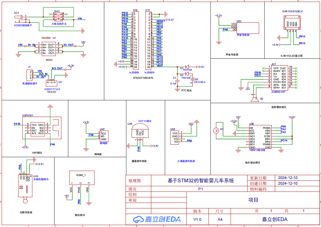 本系统采用STM32单片机作为核心控制单元,结合心率传感器、血氧传感器、体温传感器、加速度传感器等多种传感器,实现对老年人生命体征的实时监测。通过4G无线通信模块,系统能够将采集到的健康数据(如心率、血氧、体温、运动状态等)实时上传至云平台。家属和护理人员可以通过移动端APP远程查看和管理老年人的健康数据。系统还内置摔倒检测功能,利用加速度传感器实时监测老人的运动状态。一旦发生摔倒或异常情况,系统会立即触发报警,并通过APP或其他通信方式通知家属或护理人员,以便及时进行干预,确保老年人的安全。