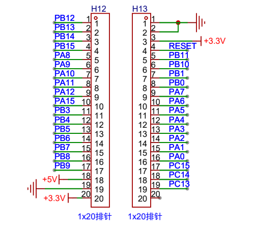 本设计的OLED显示屏的型号为“OLED-0.96-4P”,有两个GND引脚,它们代表地线,用于为电路提供共同的参考电位。5V引脚表示外部电源的正极,它向OLED显示屏提供所需的电力。PB8和PB9引脚用于传输控制信号或数据到OLED显示屏。SC的引脚代表时钟信号,用于同步数据的传输。SDA0.96引脚用于传输显示数据的串行数据线,通过这条数据线,集成电路(IC)可以向OLED显示屏发送指令和数据,以控制其显示内容。