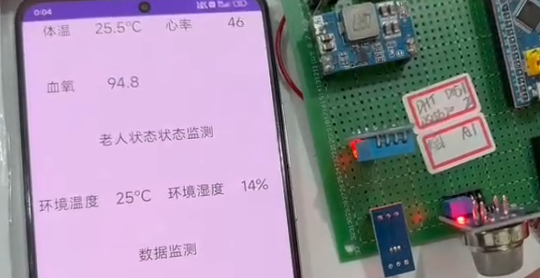 Through the 4G module, the system uploads data to the app, allowing family members and hospitals to monitor the health status of the elderly in real-time. This system provides comprehensive health monitoring and safety protection for elderly people living alone, and has broad application prospects.