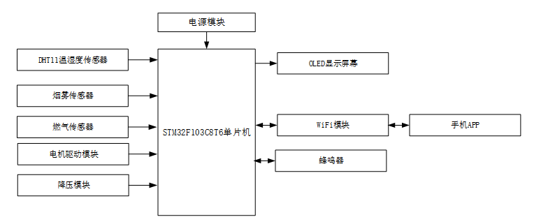 基于STM32的智能家庭厨房安防系统集成了多种智能监测与控制功能,旨在提升厨房安全性和智能化水平。系统通过STM32F103C8T6微控制器作为核心控制单元,结合烟雾传感器、燃气传感器、温湿度传感器、继电器控制模块和电机驱动模块,实现厨房环境的实时监测、智能报警、自动排风和远程控制功能。