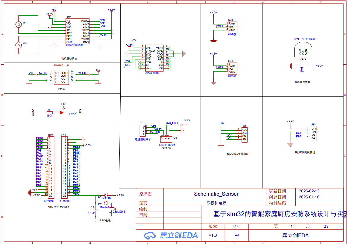 STM32最小系统的设计保证了系统的高效性、稳定性和可扩展性,使其能够适应家庭厨房安防系统的复杂环境需求,为后续的软件开发和传感器扩展提供了可靠的硬件基础。