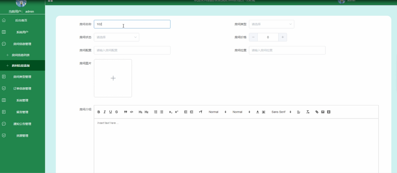 | 房间信息添加测试 | 测试管理员添加房间信息信息 |