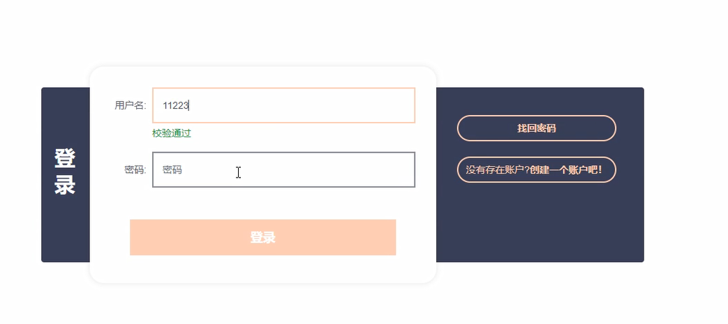 (2)用户登录:点击“登录”按钮,输入用户名以及密码登录系统,登录时前端会自动校验用户名与密码,输入正确登录成功,输入错误会有提示信息。