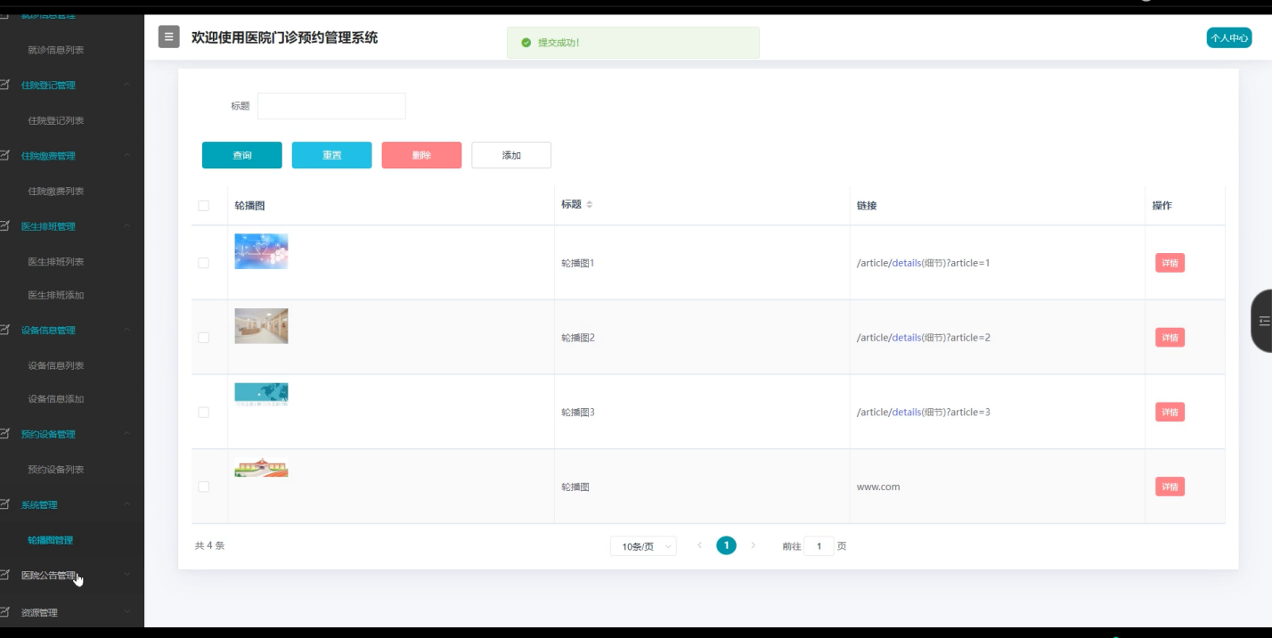 系统管理(轮播图):管理医院网站、轮播图和宣传内容。
