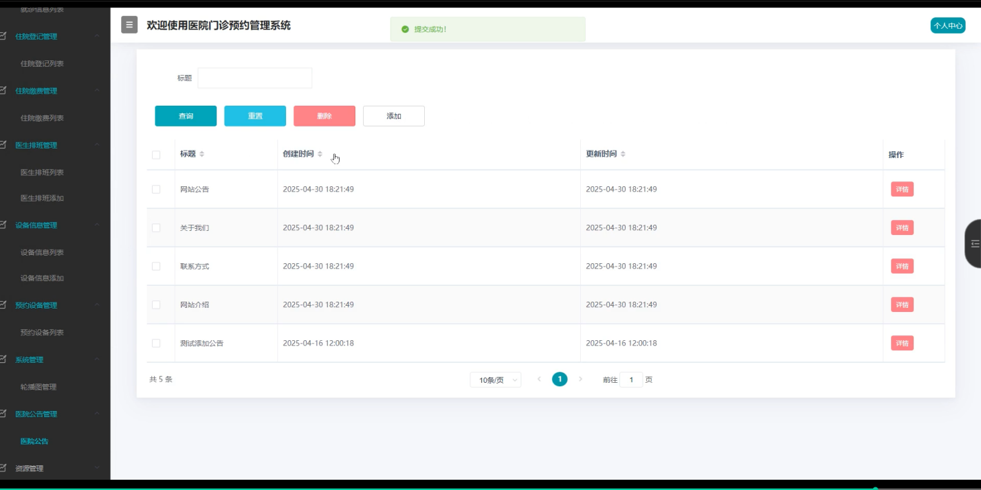 医院公告管理:发布医院的公告信息,确保患者及时了解医院的动态。