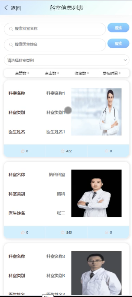 科室信息:查看各科室的介绍、诊治内容及医生安排。
