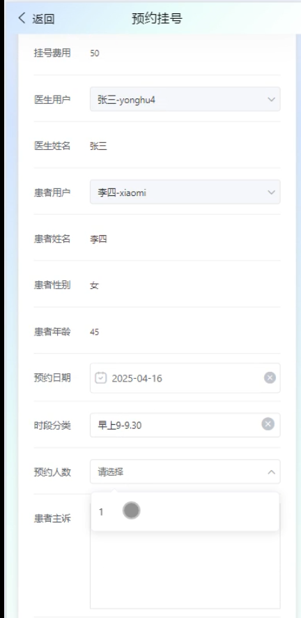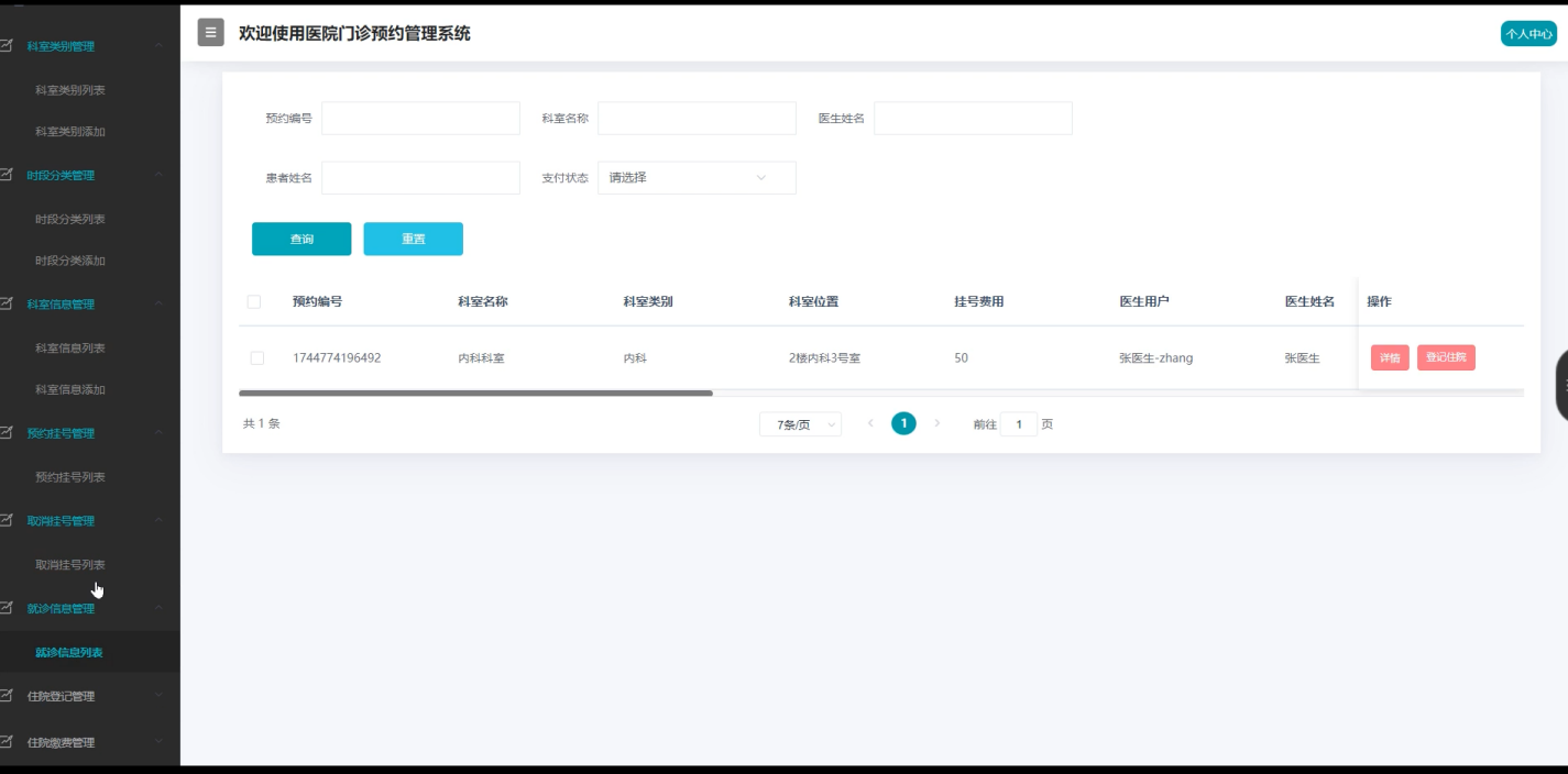 预约挂号管理:处理患者的预约挂号情况,查看预约患者信息。