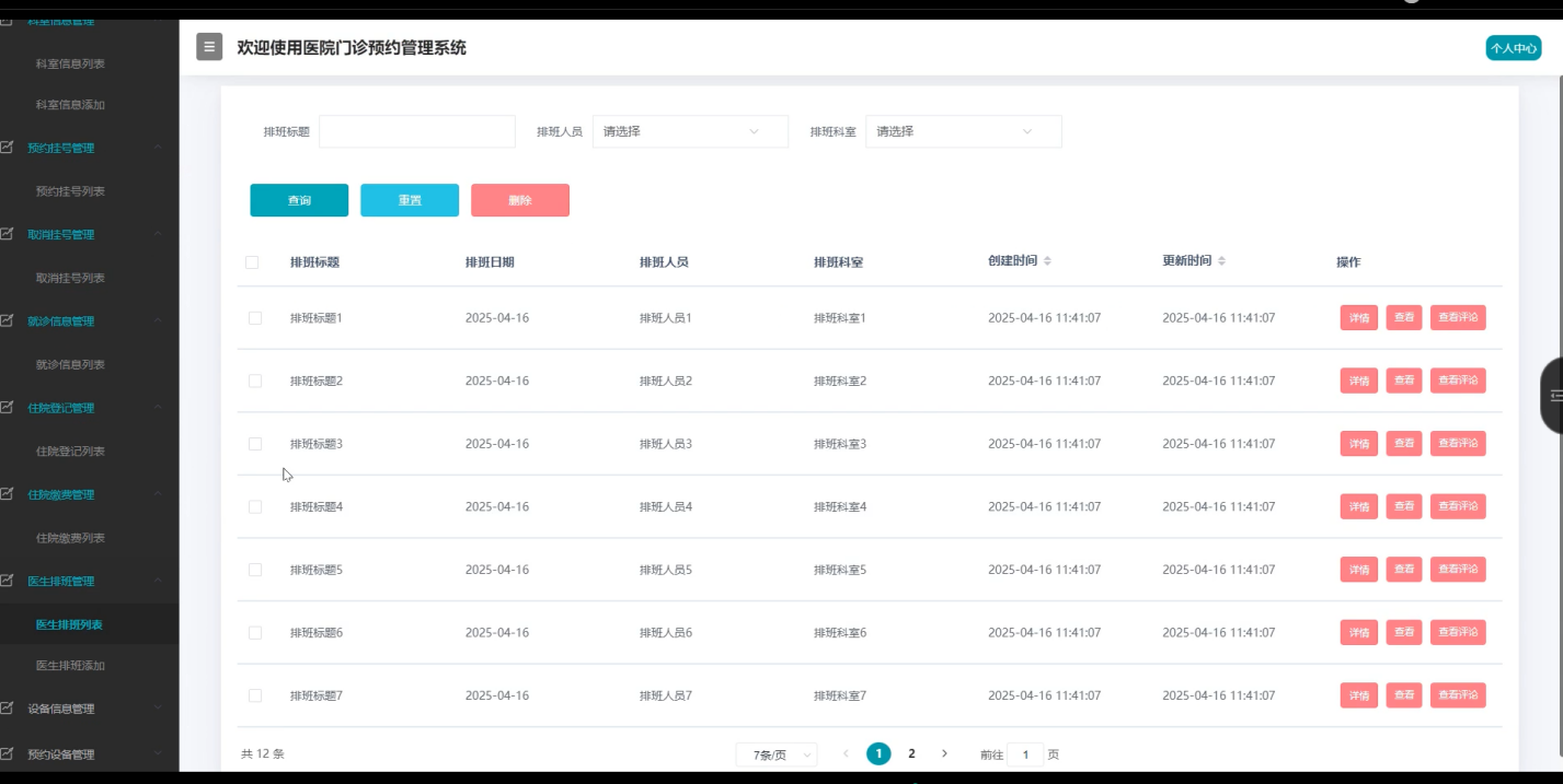 医生排班管理:安排医生的排班计划,确保医疗资源的优化配置。