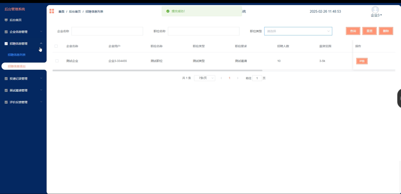 企业信息管理:企业可以编辑和更新自己的信息,包括公司简介、联系方式、招聘岗位等。