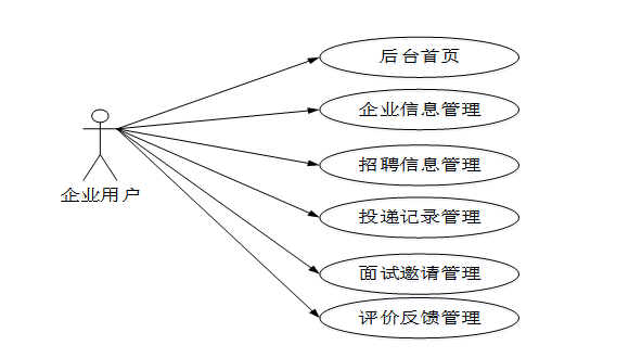 本系统采用Spring Boot框架,结合前后端分离架构,提升系统的性能、扩展性和可维护性。系统用户分为管理员、企业用户和学生用户,不同角色拥有相应的功能权限。管理员负责平台管理、招聘信息审核和数据统计,企业用户可发布招聘信息、管理简历投递、发送面试邀请,而学生用户能够浏览招聘信息、投递简历、接收面试邀请并管理求职记录。此外,系统支持通知公告、留言反馈、评价管理等功能,促进用户信息沟通,提高招聘匹配效率。