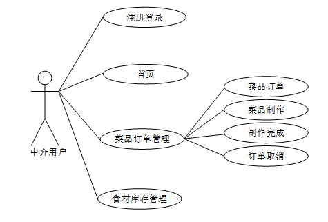 springboot基于Java的酒店点餐信息系统中厨师用户包含注册、登录、首页、菜品订单管理(菜品订单、菜品制作、制作完成、订单取消)、食材库存管理等功能。厨师用户用例图如下所示: