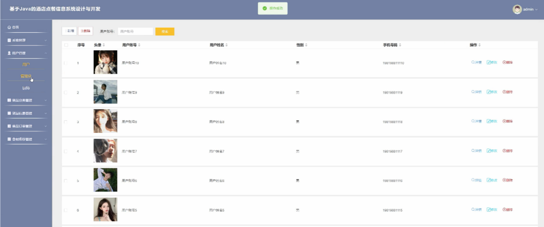 用户管理:管理员可以在此功能中管理用户信息,包括新用户注册审核、用户权限调整、管理员和厨师账号管理等,确保系统用户信息的准确性和安全性。