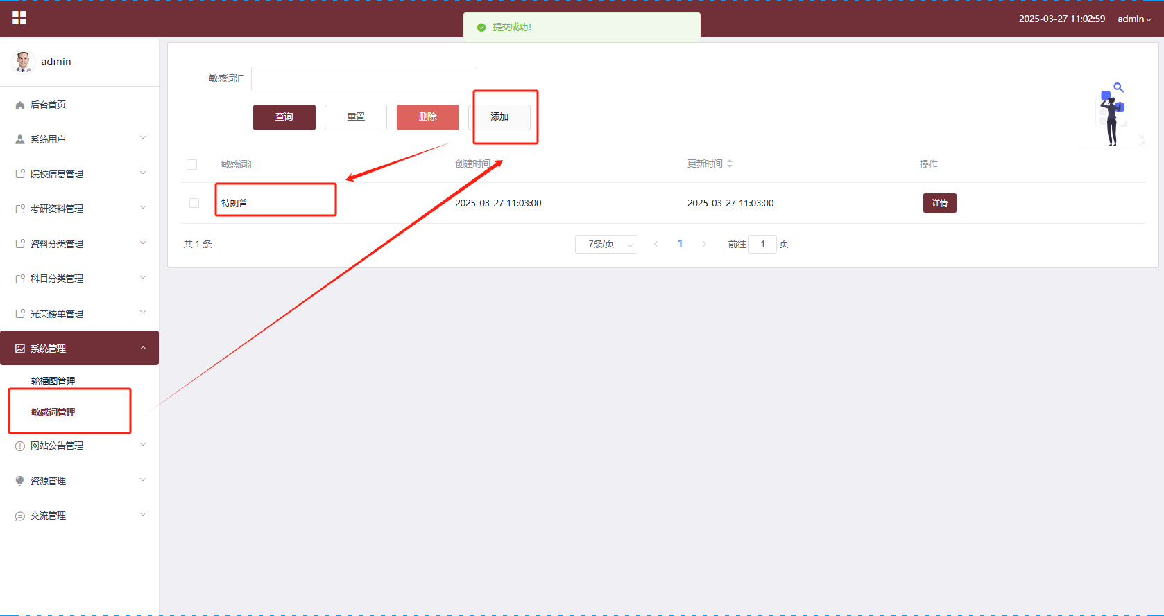图 5.15 敏感词管理页面