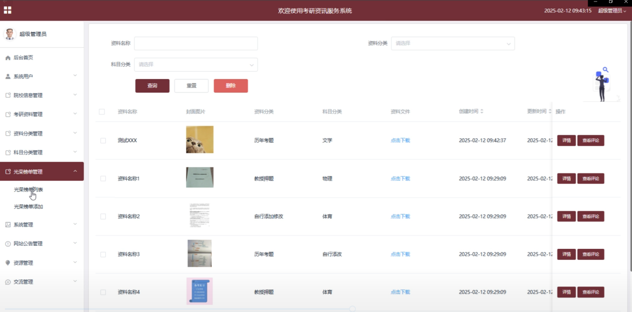 5.2.5考研资料管理页面