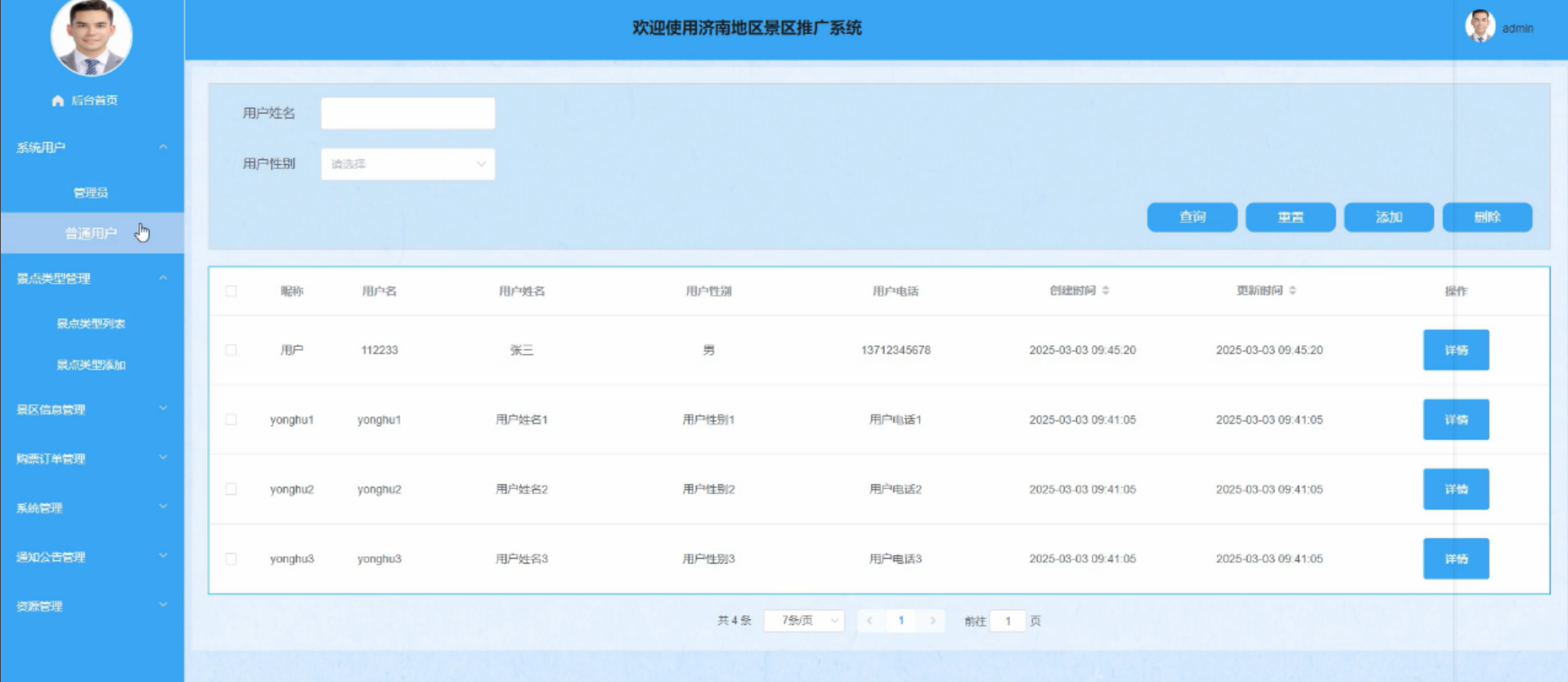 济南地区景区推广系统包含普通用户和管理员两个角色,主要功能如下: