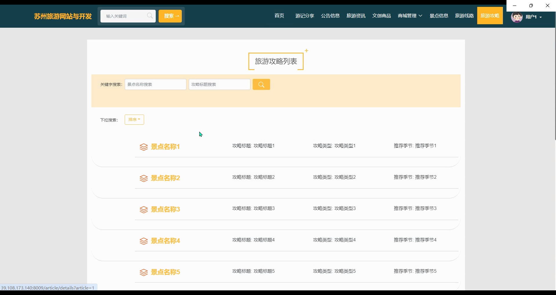 - 首页:展示苏州旅游相关的精美图片、推荐景点、热门线路、最新资讯等,吸引游客浏览。