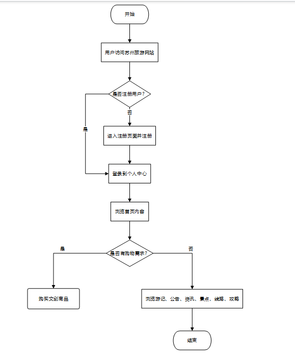 1、需求分析:通过对苏州旅游市场的调研,确定了系统应具备的主要功能,包括景点信息查询、旅游线路推荐、个性化旅游攻略、文创商品购买等,同时也考虑到游客对便捷性、互动性和个性化的需求。系统将提供用户注册、登录、订单管理、评论和游记分享等功能。