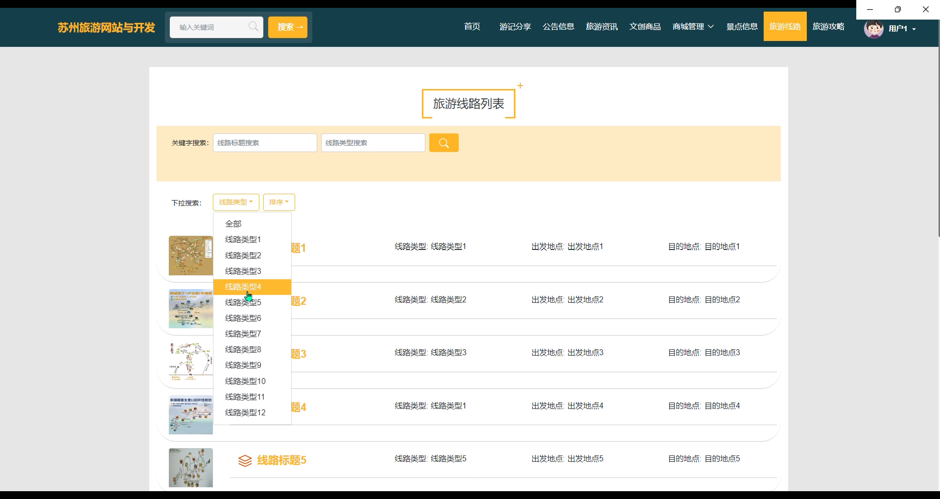 - 线路分类管理:对旅游线路进行分类管理,例如短途游、长途游、亲子游等,方便用户查找。