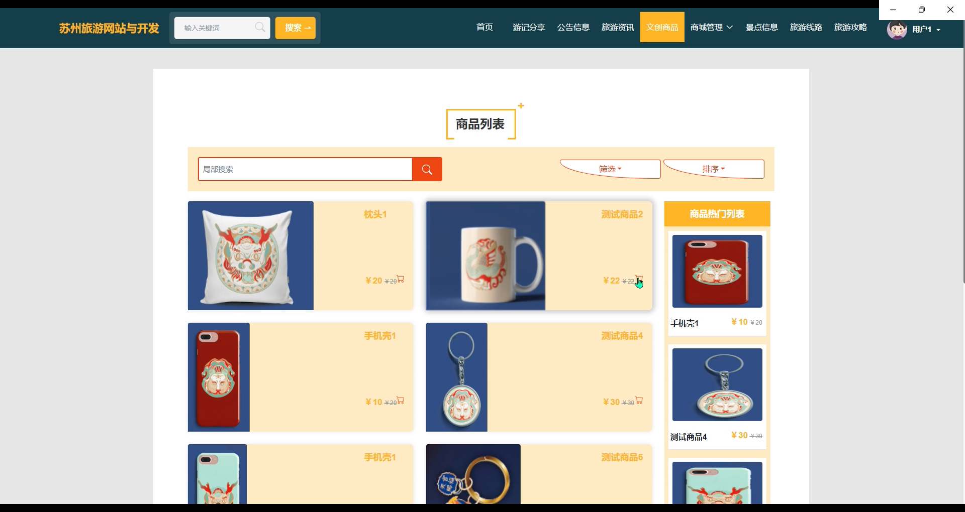 - 文创商品:展示苏州特色文创商品,如手工艺品、苏州特产等,供用户购买。