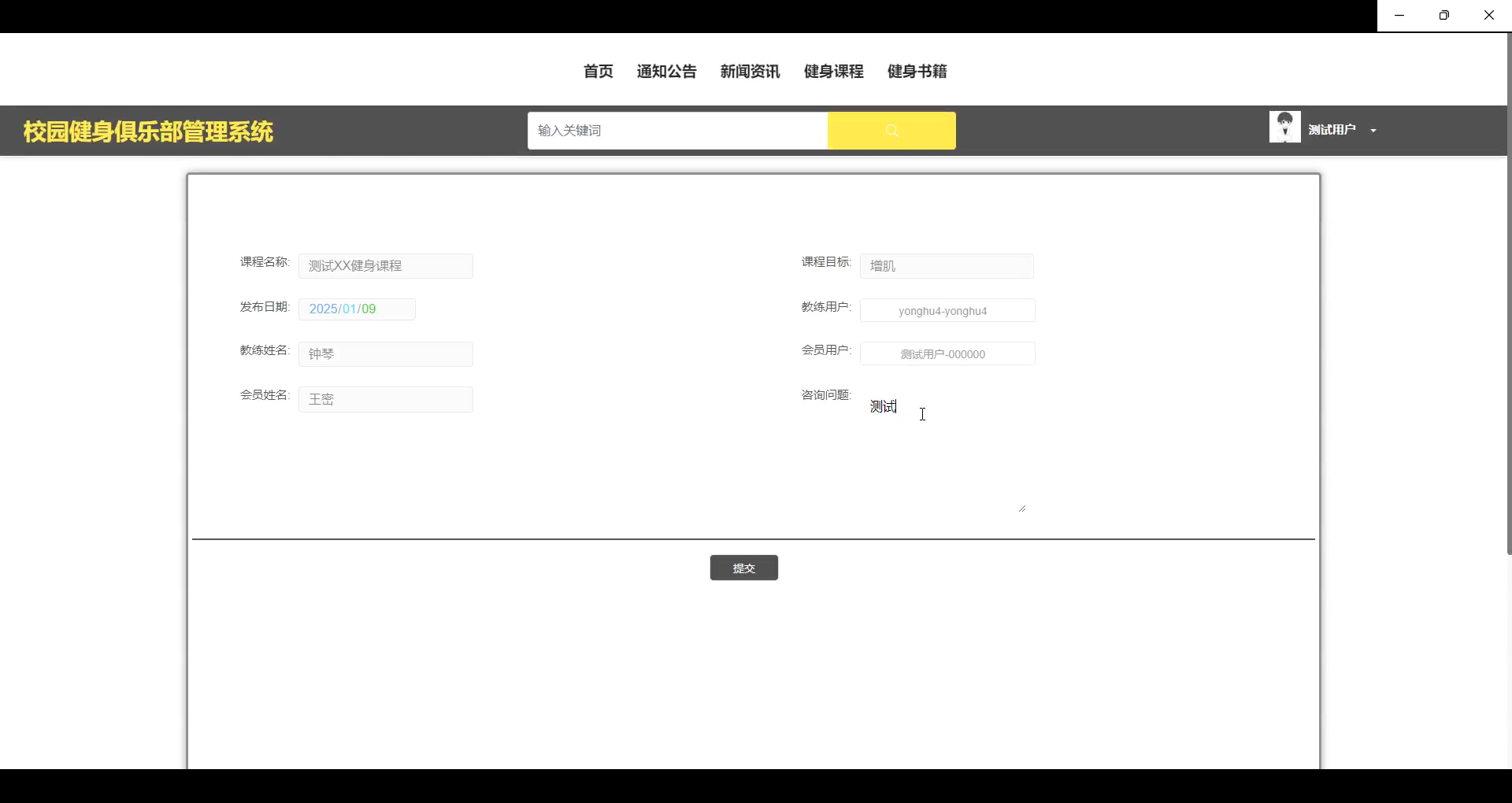 在测试过程中,发现功能出现不符合预期的情况,通常表现为输入错误时的提示信息未能正确展示,或者在某些极端情况下,系统未能做出及时响应。此类问题将引起开发团队关注,并需进一步调试优化。此外,测试还验证了系统的稳定性,特别是在高并发场景下的表现,如预约课程时的处理效率和购买书籍时的库存校验功能。