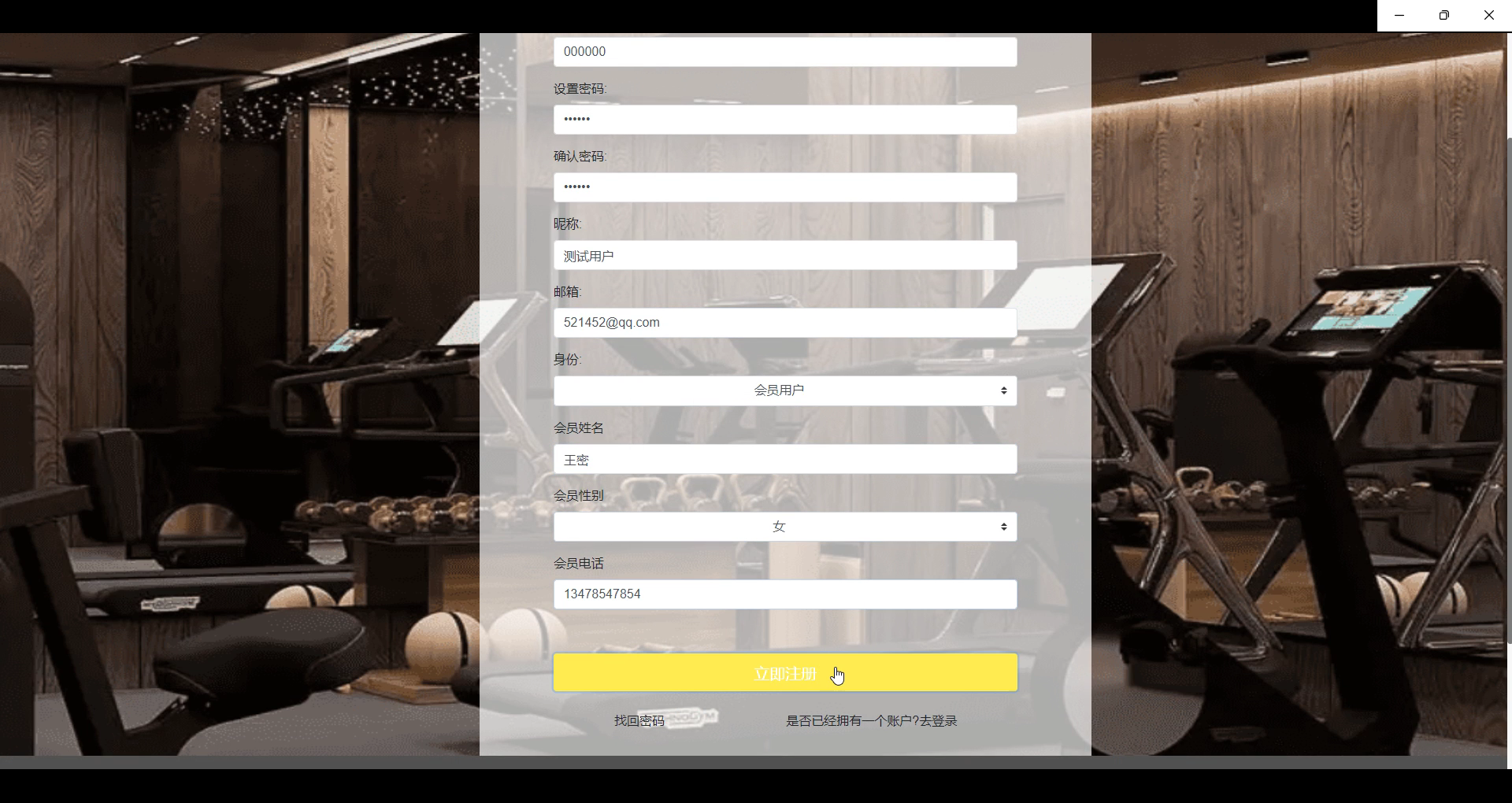 输入有效信息并提交注册 |