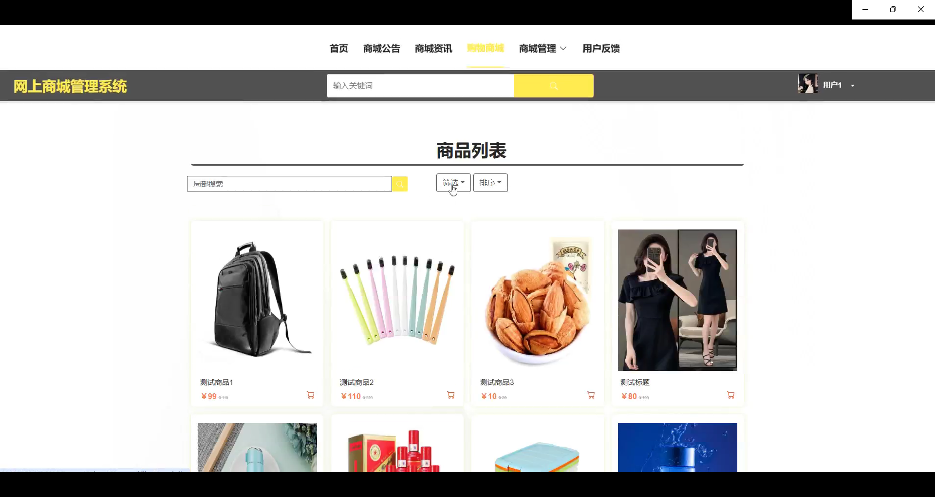 购物商城:展示所有商品,提供详细的分类信息,支持商品搜索、筛选(按价格、品牌、评价等)和排序(如按销量、价格高低等)功能,方便用户快速找到所需商品。