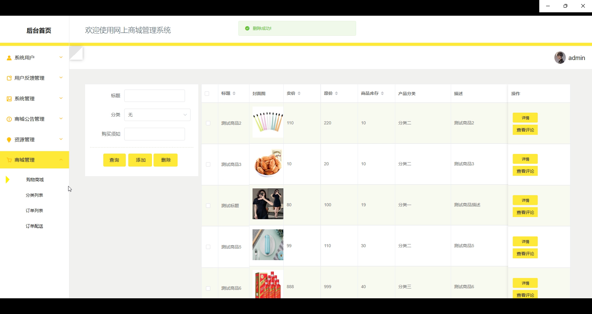 图5-11 商城管理界面