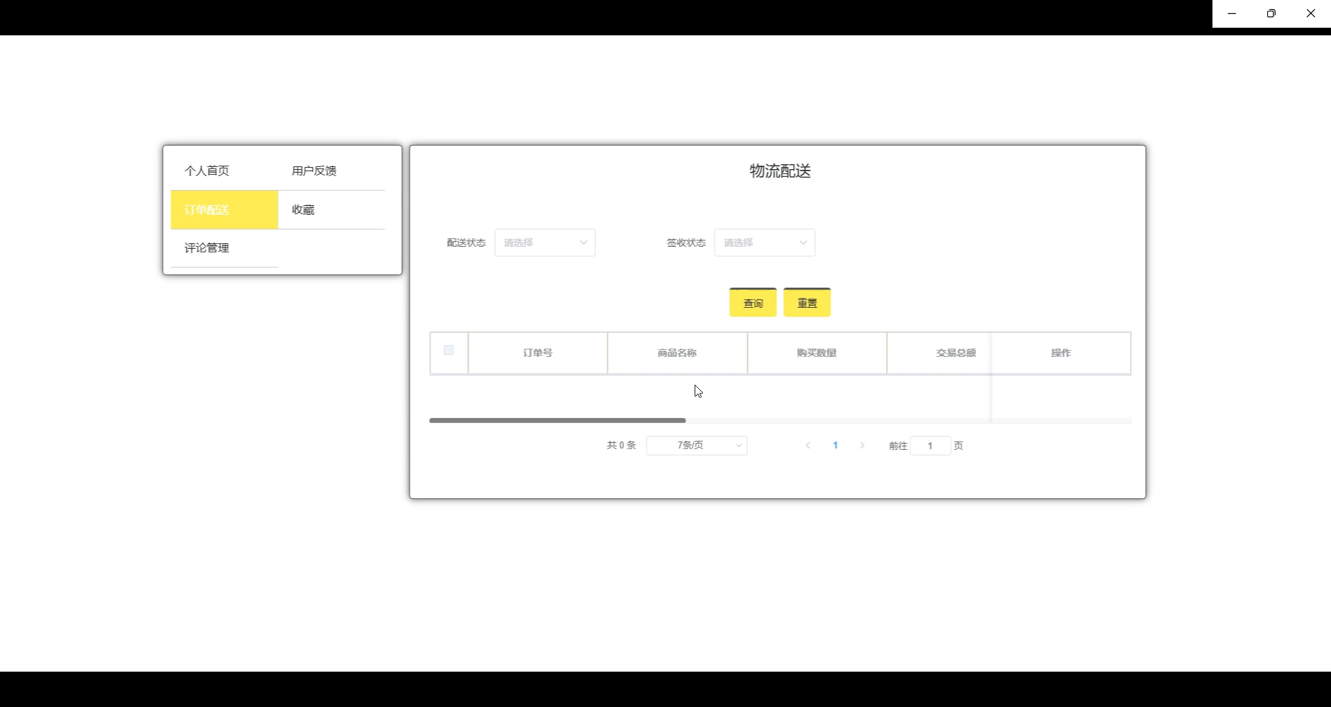 个人中心:用户可以查看个人资料、订单历史、已收藏的商品,并管理自己对商品的评论;“订单配送”模块显示当前订单的配送状态,包括物流信息和预计到达时间。