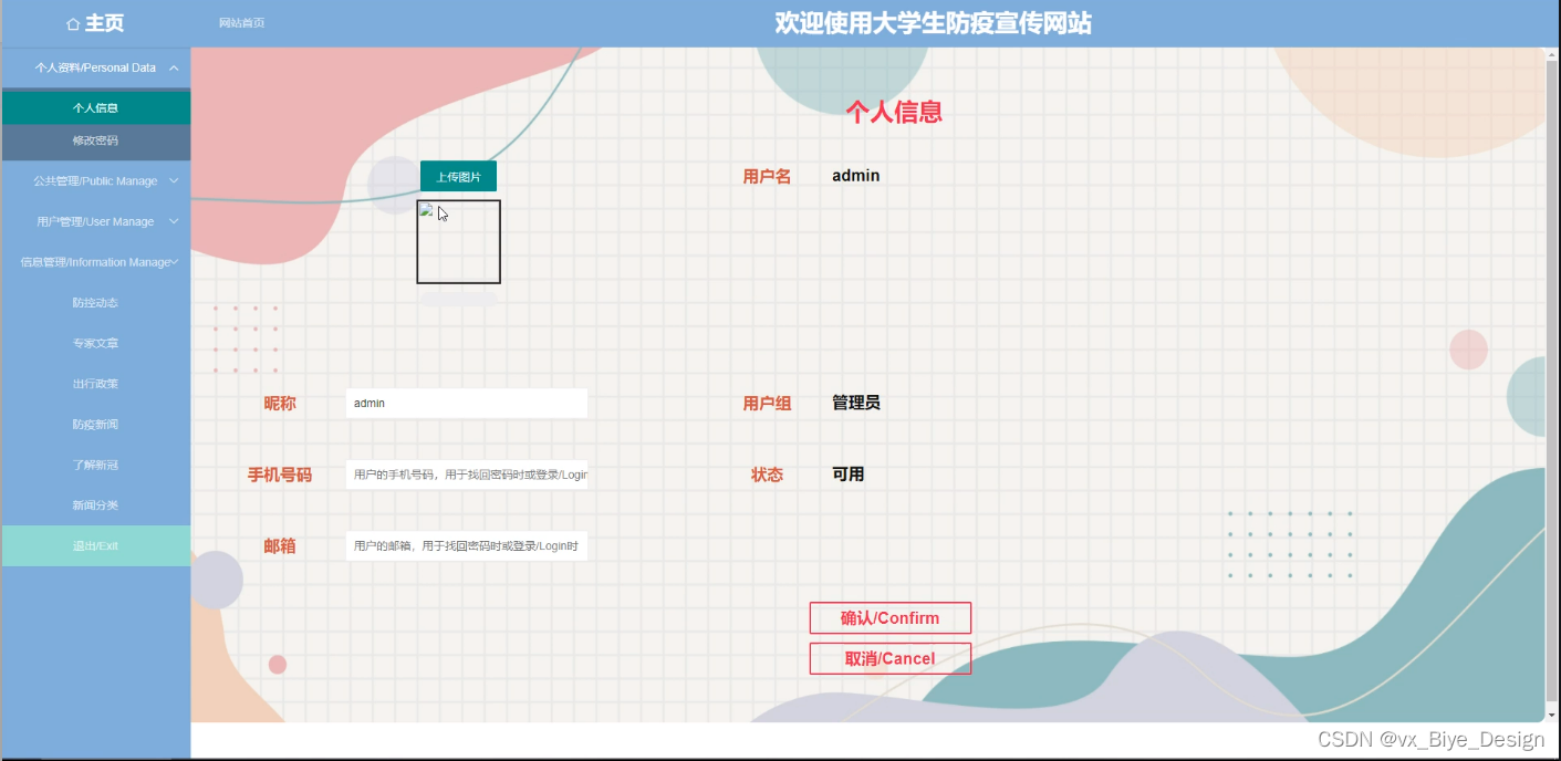 大学生防疫宣传网站 系统管理系统是一款方便、快捷、实用的信息服务查询软件。随着智能网络在全球市场的不断普及以及各种智能平台的使用,系统的开发与学生在校的日常需求相关,作为中国主流智能的技术开发系统,自然需要这样的软件来满足更多学生的需求和体验。