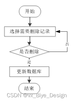 用户选择要删除的信息并单击Delete按钮。系统提示是否删除信息。如果用户想要删除信息,系统将删除信息。系统数据库删除信息。删除信息流程图如图3-5所示。