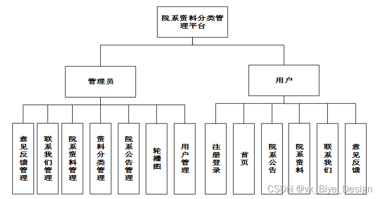 院系资料分类管理平台是中需要存储不少院系资料信息,其模块功能结构,具体的结构图如下: