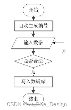 用户成功登入系统后就能够实现增加数据的操作,增加数据的编号是特定的,系统生成,用户不能随意填写,除了编号以外,其他增加信息用户自己填写,填写后的信息经过系统验证,验证合法通过就显示增加数据成功了,相反的话,就没有增加成功,图2-1显示的就是在增加数据时的流程。