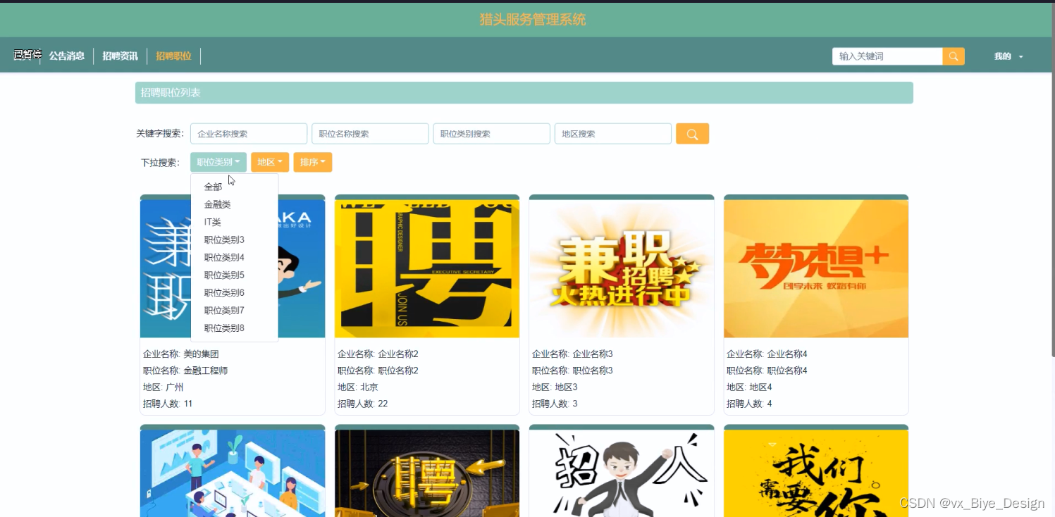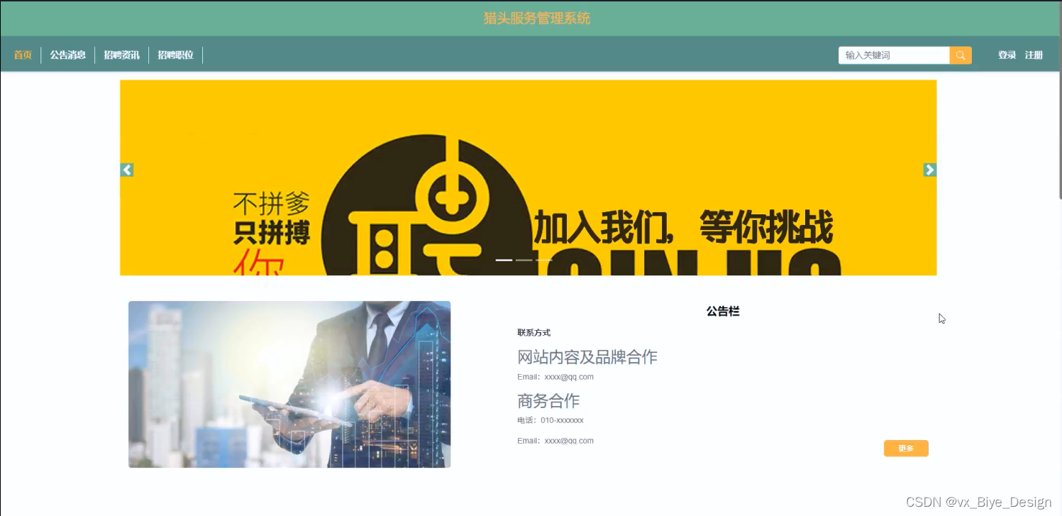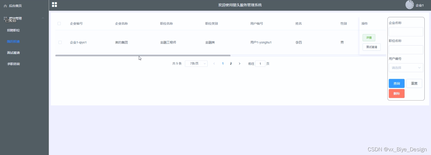 (2)猎头服务管理系统中的web后台管理中的前端使用的是bootstrap框架,它配合ajax和jquery可以美化页面设计。