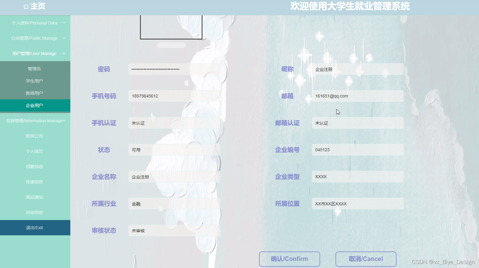 企业信息管理:对企业信息进行维护,添加、删除、修改信息。