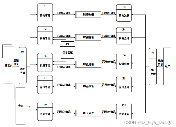 面试通知数据模块:可分为面试通知数据浏览、面试通知数据检索、面试通知数据维护三个模块,企业对面试通知数据有维护的权限,发布新的面试通知数据、更新已有的面试通知数据等。