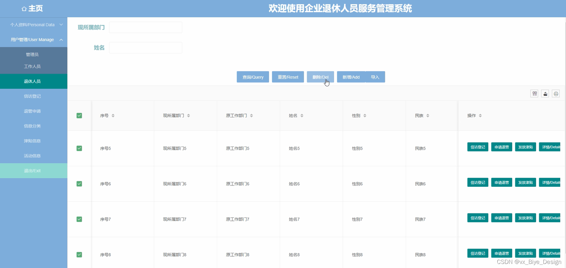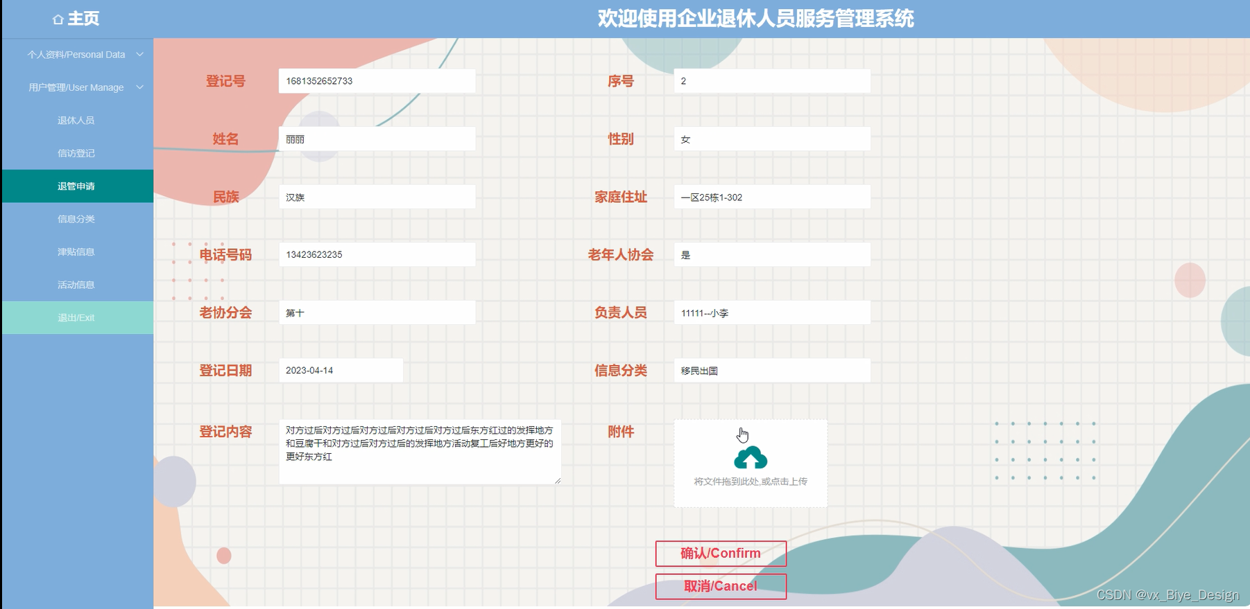 The development of this system makes it more convenient and efficient to obtain information about enterprise retirees, while also making the service management information of enterprise retirees more systematic and orderly. The system interface is relatively friendly and easy to operate.