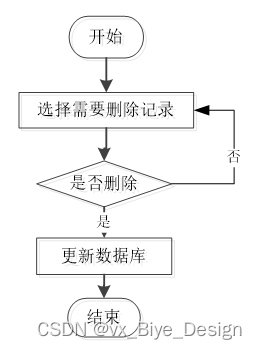 用户选择要删除的信息并单击Delete按钮。系统提示是否删除信息。如果用户想要删除信息,系统将删除信息。系统数据库删除信息。删除信息流程图如图3-5所示。